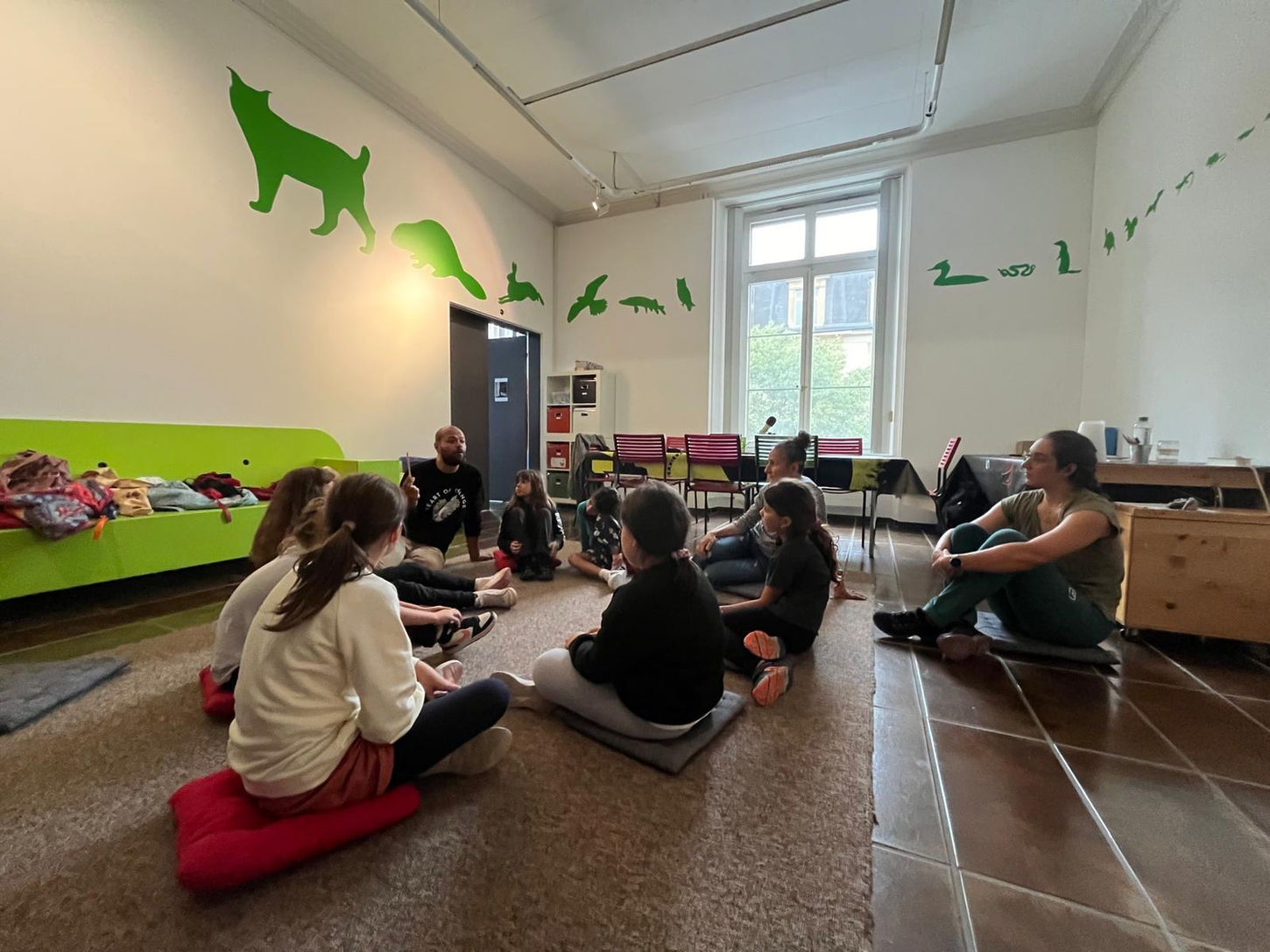 "Orchestre du Lac" is a creation in which music flows like water, without barriers or preconditions. It is an open Orchestre where each person becomes an instrument because we are vibration and music, because we are water. This artwork, created on the shores of Lake Neuchâtel with the support of the Library for a Happy Future and the Natural History Museum of Neuchâtel, invites everyone to be part of a living symphony, based on the feelthinking (“sentipensar” Indigenous and peasant concept from Colombia). Here, the sensory and the rational intertwine in harmony to offer an unprecedented musical experience. This project was born out of a desire to explore the local knowledge, traditions, and stories of the Neuchâtel region about water and good living (Buen vivir). The "Orchestre du Lac" is made up of children whose voices create the rhythms, beats and whispers that give life to this artistic work. It is based on inclusion and the fact that we are all water, life, and music. No musical training was required, just an openness to feel, think and express.